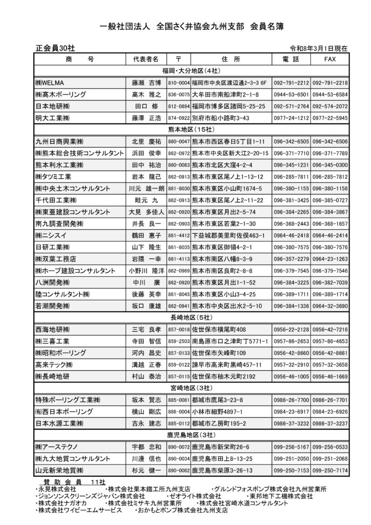 一般社団法人 全国さく井協会九州支部 会員名簿